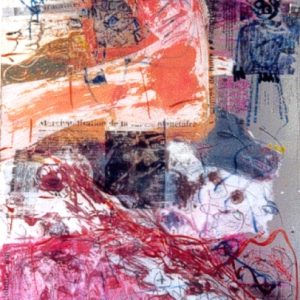 Prendre à même le chaos du monde, et notamment dans les bribes de textes qui participent au bruit et la fureur de ce monde afin de dé-substantifier d’abord le support, coller d’abord pour décoller et arracher ensuite, faisant ainsi paraître certains envers lisibles et déchiquetés, abraser le support pour tendre par-dessus les couches de couleurs qui se recouvrent sans jamais abolir leurs écarts, rendant ainsi lisible l’épaisseur de leur simple pellicule.